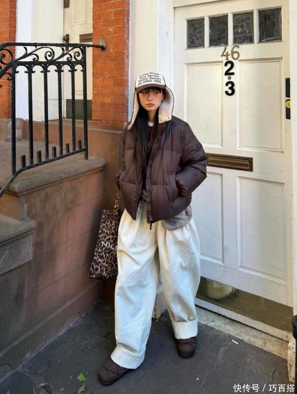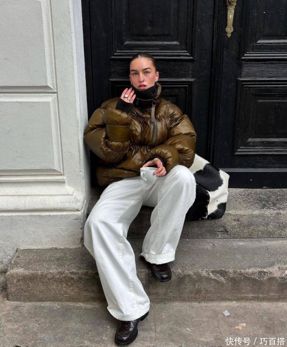 除了博主身上这类羽绒服外,大家也可以选择其他保暖外套与白色长裤搭配,比如,可以尝试皮毛一体棉服,选择貂皮外套、皮草大衣,与四季款白色长裤搭配,和谐耐看。