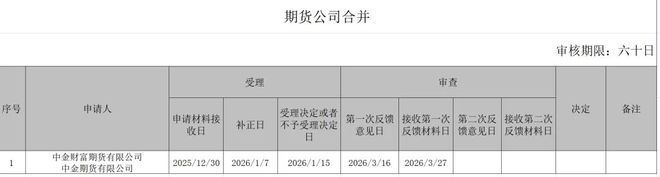 回溯此次合并全程,进程高效有序。去年12月29日,中金财富期货发布公告称,公司正筹划吸收合并中金期货事宜,特此通知债权人。次日,证监会正式接收该合并事项的申请材料,合并流程正式启动。